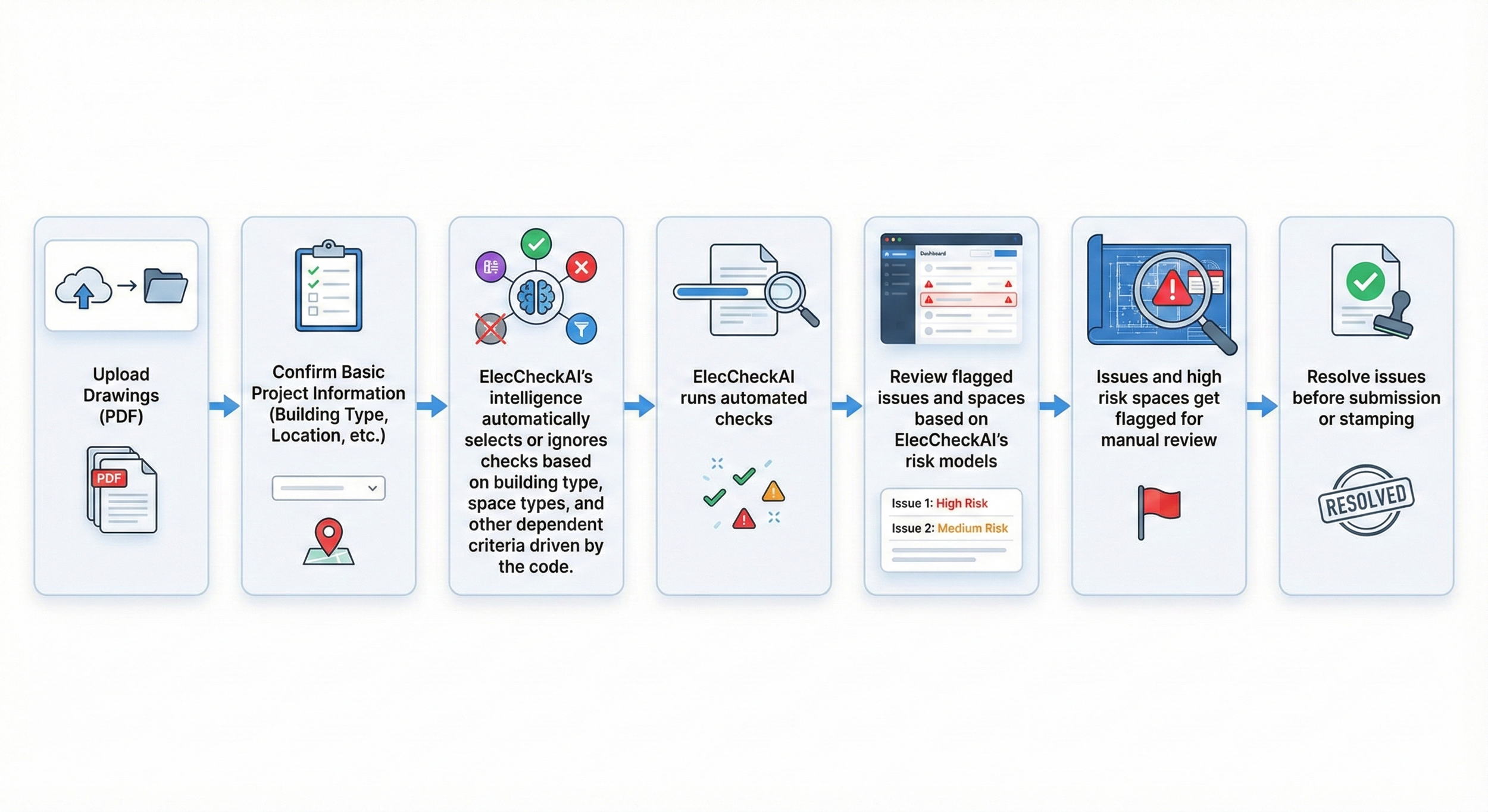Enable or require designers to submit an ElecCheckAI report for your jurisdiction to accelerate and automate the submittal process even further.